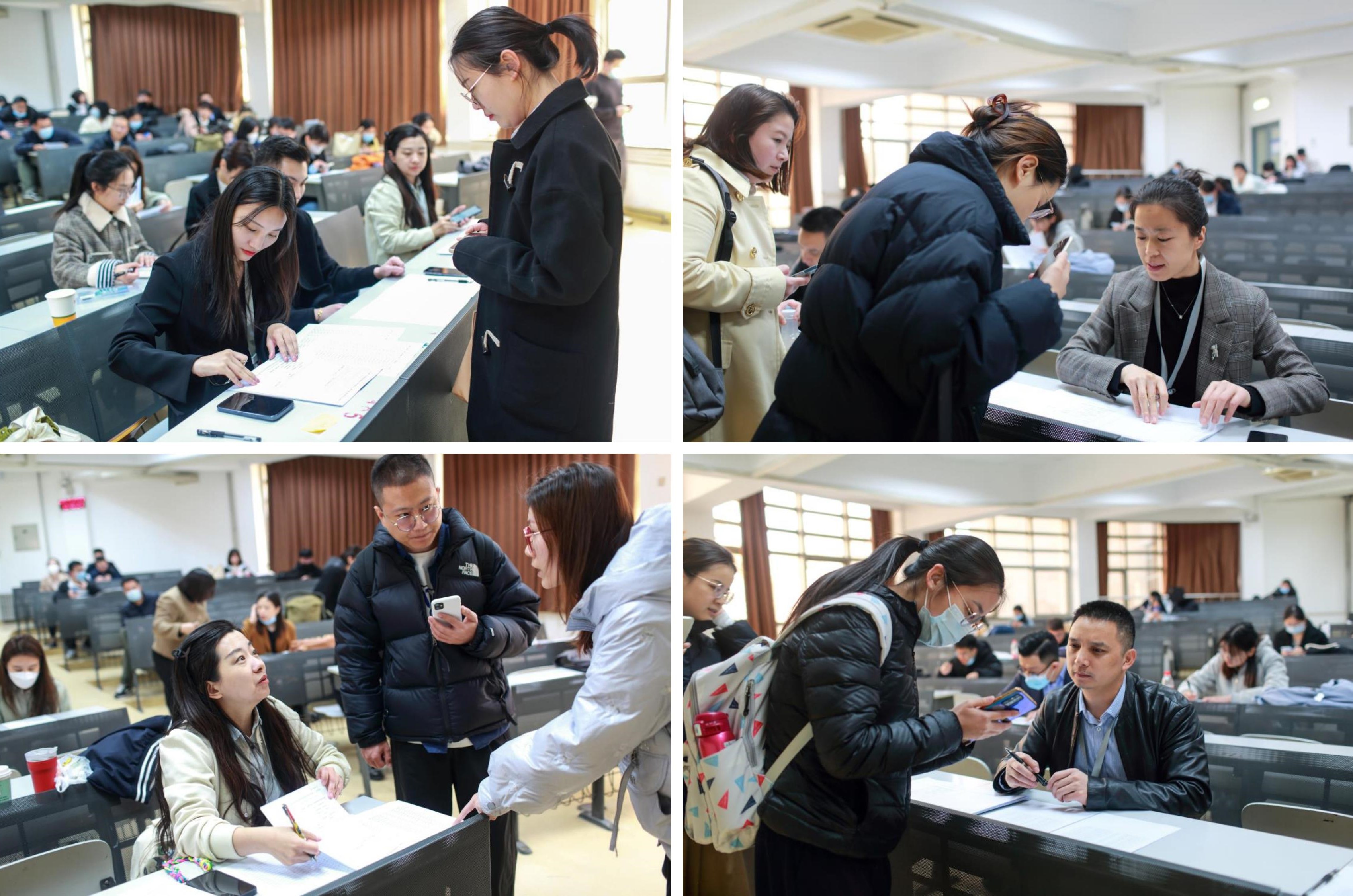3月25日下午,工商管理硕士(MBA)全日制考生分成11组进行现场面试,60余位面试考官对学生的综合素质和英语口语能力进行了全面考核。